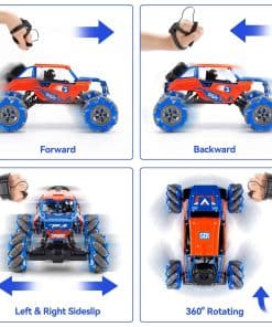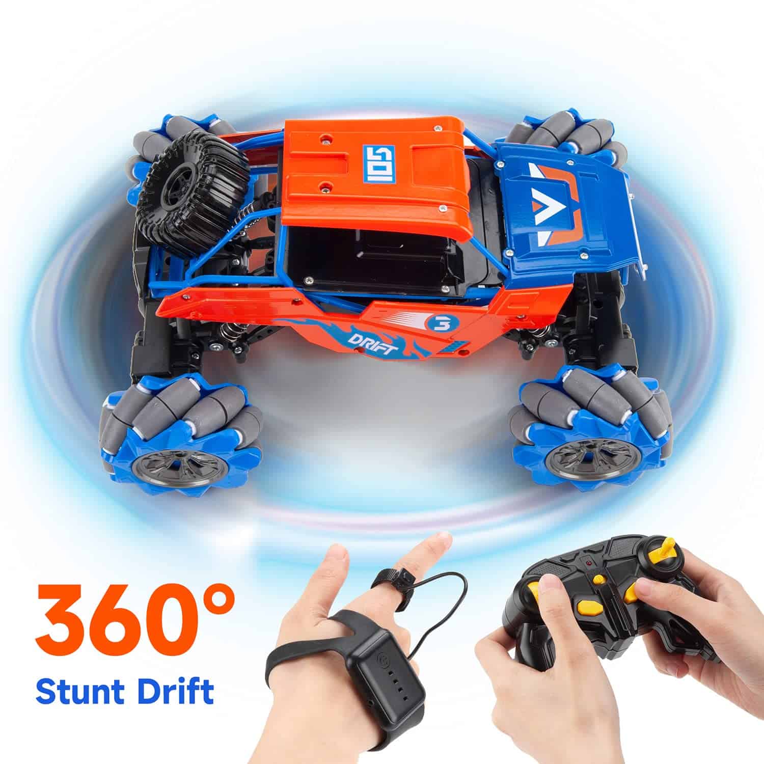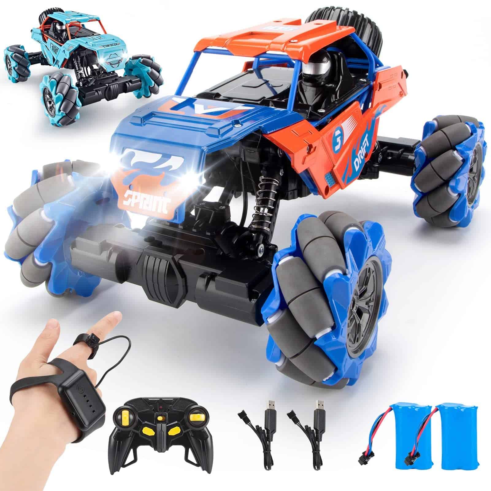 1. Control de gestos a mano: Dos formas de controlar el coche RC – Controlador de gestos y control remoto. 2. Funciones avanzadas: Adelante/atrás, giro a la derecha/izquierda, deriva derecha/izquierda, giros extremos de 360 grados, escalada de pendientes, deriva 4WD con luces. 3. Construcción duradera: Carcasa de metal resistente a los arañazos y suspensiones de resorte independientes para estabilidad y solidez. 4. Larga duración de batería: Equipado con potentes baterías recargables de iones de litio 2 X 7.4V /1200 mAh para aproximadamente 40 minutos de uso continuo. 5. Gran idea de regalo: Increíble coche RC controlado a mano para niños de 8 a 12 años y más disfrutar de acrobacias de monster truck.