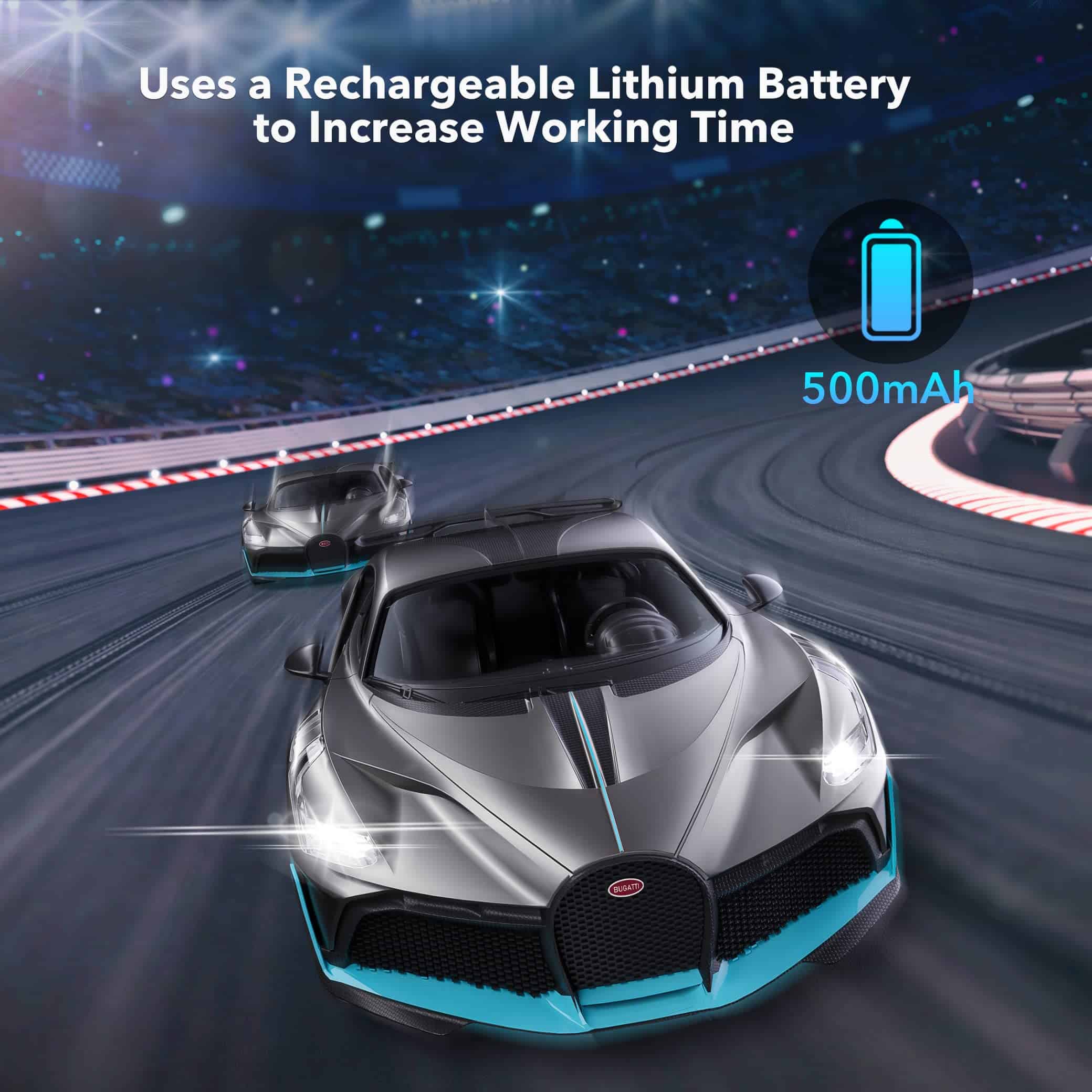 Nuestro coche de juguete es imprescindible para aquellos apasionados por los autos potentes y súper rápidos. A diferencia de otros coches de control remoto en el mercado, el nuestro es una réplica genuina del superdeportivo Bugatti Divo, a nivel mundial. En comparación con otras réplicas, este exquisito coche está diseñado con extrema atención al detalle para ofrecerte una experiencia realista, lujosa y una descarga de adrenalina de la que nunca te cansarás. Los hermosos detalles, las funciones inteligentes y la conducción suave controlada son los atributos que harán que tu experiencia sea simplemente sobresaliente y placentera.