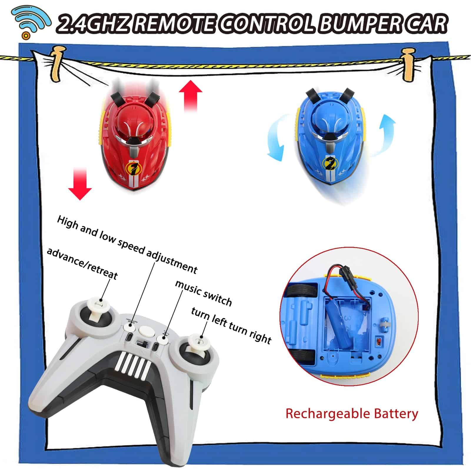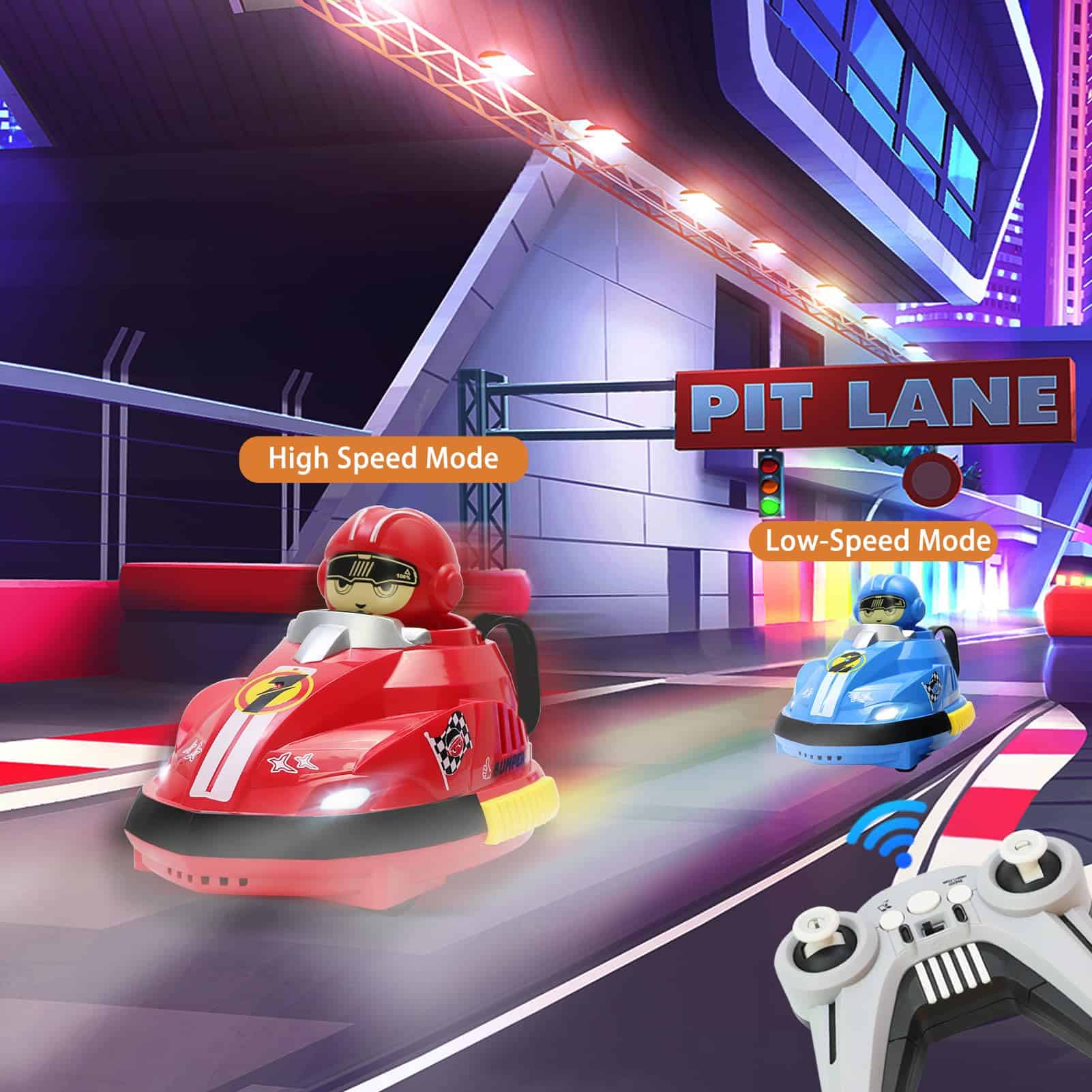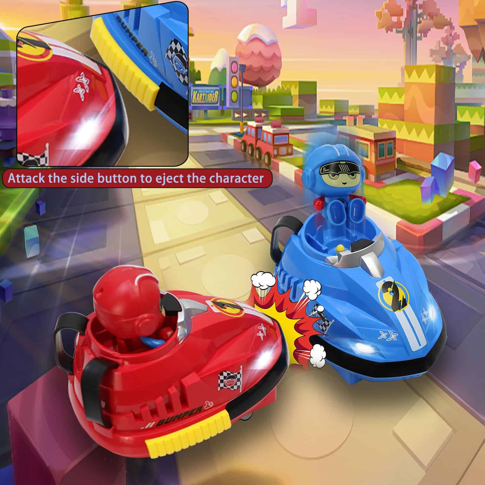 Este es un hermoso coche de juguete de control remoto que sería un regalo ideal para un niño. El regalo perfecto para las fiestas Cuando todavía es un niño, no hay nada mejor que correr coches. El diseño actualizado del parachoques agrega diversión adicional al coche RC para niños. ¡Cuando el coche de juguete RC es atacado desde el lado, la figura sale disparada! Mientras tanto, estos coches RC para niños siguen disponibles en velocidades rápidas/lentas. Aceleremos y disfrutemos de la persecución con juguetes de coches RC. Para los niños, los coches de control remoto son más que diversión y emoción. Ayudan a desarrollar habilidades motoras y sociales, construir confianza e inspirar la creatividad. Por eso es importante elegir nuestro set de coches de carreras RC, que viene con dos coches y dos mandos a distancia, para que los amigos, hermanos e incluso los padres puedan correr dentro de la casa o al aire libre