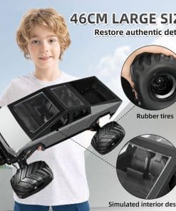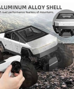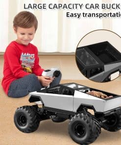 El Coche de Control Remoto Suvabe Cybertruck es un modelo a escala 1/8 con un diseño realista y detalles excepcionales. Con un tamaño extra grande de 18.11 x 12.4 x 9.25 pulgadas, este coche de juguete es todo un espectáculo. La carcasa está hecha de una aleación resistente que asegura la durabilidad del juguete, permitiéndole soportar un juego brusco sin problemas. Equipado con neumáticos de goma de 5.1 pulgadas, tracción en las cuatro ruedas, un motor de alto torque y amortiguadores de aceite rellenados, el Cybertruck ofrece un rendimiento excepcional. Puede conquistar pendientes de hasta 45 grados y enfrentarse a cualquier terreno con facilidad. La batería recargable de 7.4V 1200mAh proporciona una excelente resistencia, permitiendo aproximadamente 20-30 minutos de tiempo de manejo cuando está completamente cargada. El tiempo de carga es de aproximadamente 2 horas. El control remoto de 2.4Ghz ofrece un rendimiento excepcional, con una mayor distancia de control y la capacidad de soportar múltiples jugadores simultáneamente sin interferencias. La distancia de control remoto es de más de 30 metros. El diseño del Cybertruck incluye faros tipo LED, sonidos de coche deportivo y detalles exquisitos que impresionarán a niños y adultos por igual. Este coche de control remoto es el regalo perfecto para cumpleaños, Navidad u otras ocasiones especiales.