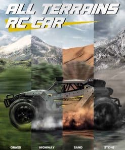 1. Coche RC Duradero de Alta Calidad Este coche de control remoto está hecho de material ABS de alta calidad seguro y respetuoso con el medio ambiente, que es resistente al desgaste, a la corrosión, no tóxico y tiene efecto de absorción de impactos. Su sólido chasis y carcasa, y los neumáticos duraderos pueden conducir fácilmente el coche de control remoto en la playa, roca o pavimento de concreto.
