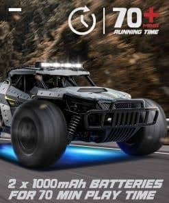 4. 2 Baterías para 70 Minutos de Funcionamiento El gran coche RC viene con DOS baterías recargables de 1000 mAh y un cargador USB. Extenderá el tiempo de conducción hasta 70+ mins, lo que depende de la operación. La batería se carga a través de USB, lo que es rápido y conveniente.