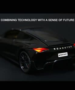 Nuestro coche de juguete cuenta con efectos de sonido y luz simulados geniales. Presiona el cuerpo o abre la puerta delantera para activar el efecto de luz y sonido, las luces delanteras y traseras se encienden y se activa el efecto de sonido. Todas las puertas, el maletero y el techo panorámico se pueden abrir. La rueda trasera del roadster tiene una función de retroceso.
