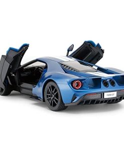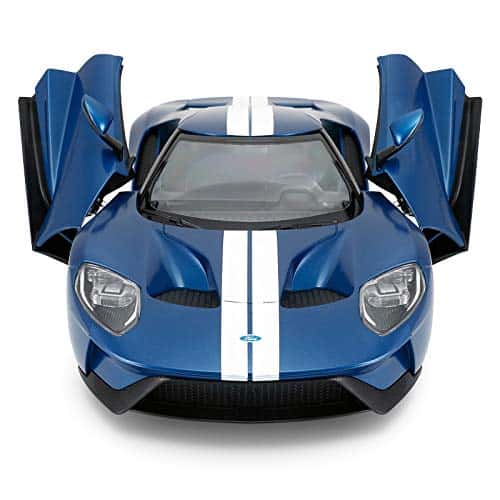 Esta es una réplica muy bien diseñada del Nuevo Ford GT. Es extremadamente detallado para un auto controlado por radio. Este coche de control remoto Ford GT está completamente licenciado. Muy bien asegurado. La luz delantera se enciende al moverse hacia adelante y una luz trasera roja brilla cuando retrocedemos. Las puertas se pueden abrir y cerrar. En la parte inferior del auto RC hay un interruptor de encendido / apagado junto con un dial que, si se coloca en el medio, pone el auto en un camino recto.