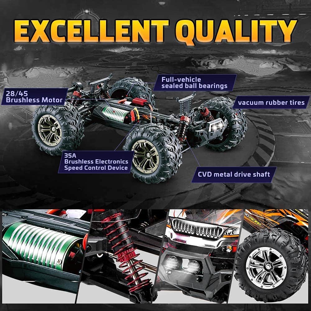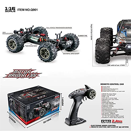 ¡Experimenta la emoción de la velocidad con este increíble Coche Monster Truck RC FMTStore FMT Brushless! Con una escala de 1:16, alcanza una velocidad máxima de 52km/h para emocionantes carreras todoterreno. Diseñado para edades a partir de los 14 años, este coche está fabricado con materiales de alta calidad como ABS, goma y componentes electrónicos para una durabilidad garantizada. El tamaño compacto del coche (27 x 23.5 x 13cm) lo hace perfecto para carreras rápidas en cualquier terreno. El paquete incluye una batería de ión de litio de 7.4V 1000mAh, el coche rc, el control remoto (pilas no incluidas), un cable de carga USB, una llave hexagonal y un manual de usuario para una configuración rápida y sencilla. ¡Prepárate para la diversión con el Coche Monster Truck RC FMTStore FMT Brushless y disfruta de su control proporcional completo, sus ejes y engranajes metálicos y su diseño listo para correr!