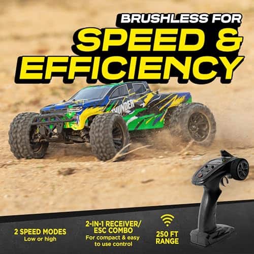 3. MOTOR BRUSHLESS: Utilizando una configuración de bobinas de alambre enrollado, el motor de este coche RC funciona como un electromagneto de 2 polos para alcanzar velocidades de hasta 30 MPH.
