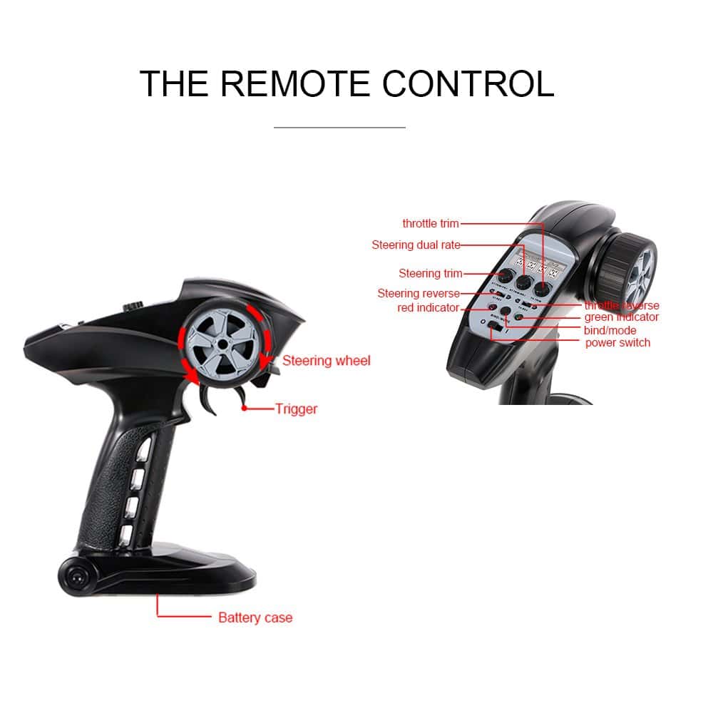 Con transmisor 2.4GHz, nunca tendrás interferencia de radio con este coche eléctrico. Está listo para competir.