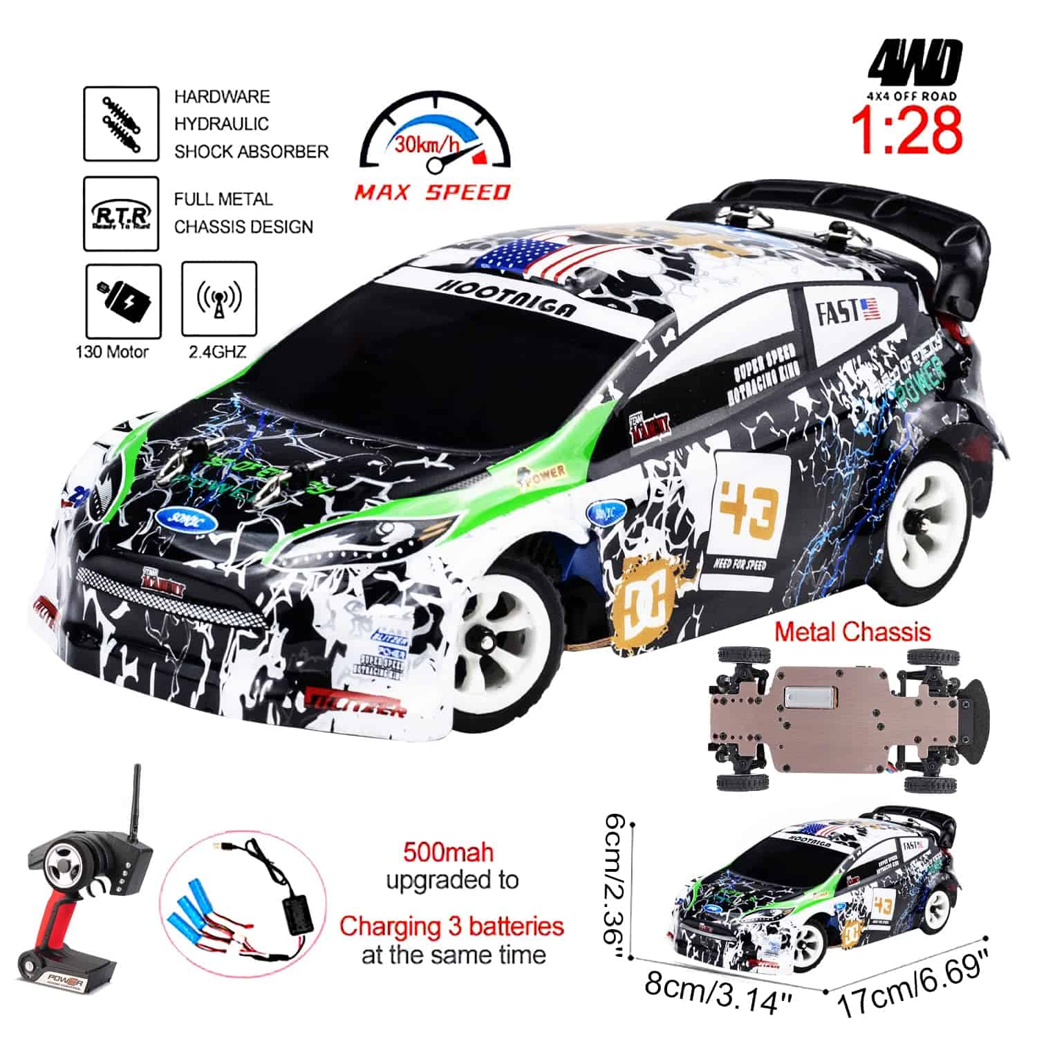 El coche rc wltoys 1/28 es un sistema de 2.4 GHz: el sistema antijamming 2.4G asegura que múltiples coches controlados remotamente puedan conducir de forma estable durante competiciones simultáneas y no interferirán entre sí. Función: el coche rc wltoys puede ir hacia adelante y hacia atrás, girar a la izquierda y a la derecha, puede cambiar de dirección de forma flexible. Las cuatro ruedas están equipadas con amortiguadores para reducir el daño al coche. Este coche rc de deriva de mesa está equipado con neumáticos de goma, que pueden evitar reventones de neumáticos durante la conducción a alta velocidad y puede funcionar de forma estable en diferentes terrenos. Buen servicio al cliente y garantía: si tiene preguntas sobre este coche rc wltoys k989, por favor contáctenos y le daremos una solución satisfactoria en 24 horas. Si hay un problema de calidad, estamos dispuestos a darle un reembolso del 100% o un reemplazo.