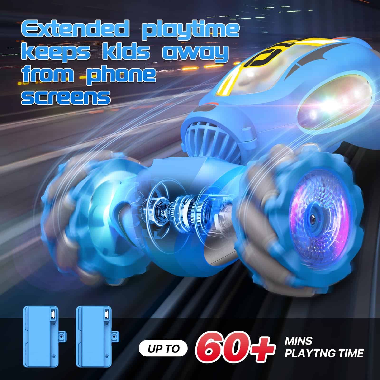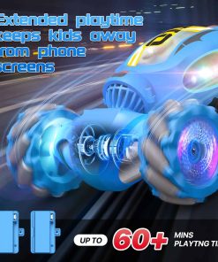 1. Duradero y de larga duración: Baterías recargables duales garantizan un tiempo de juego prolongado, permitiendo a los usuarios disfrutar de la diversión de las carreras durante 60-80 minutos. Nuestro coche de acrobacias presenta una estructura resistente y neumáticos a prueba de colisiones, asegurando que pueda resistir cientos de sesiones de juego áspero y diversos terrenos desafiantes. 2. Fácil de usar con tecnología de control remoto dual: Experimenta la conducción de un coche rc con un reloj de control de gestos y un control remoto tradicional. La tecnología 2.4G es fácil de operar y admite múltiples jugadores sin interferencias. Las maniobras incluyen rotación de 360 grados, conducción de doble cara, hacia adelante, hacia atrás, giros a izquierda y derecha. 3. Iluminación llamativa y múltiples características de acrobacias: El cuerpo transparente del coche rc tiene luces LED de colores, haciendo que las carreras nocturnas sean impresionantes y entretenidas. También cuenta con un modo de conducción de serpiente, permitiendo a los niños cambiar entre la conducción normal y la conducción de serpiente con el control remoto. 4. Se adapta a diversos terrenos: El coche teledirigido está diseñado para manejar diversos terrenos como carreteras, arena, hierba y rocas, permitiendo una experiencia de carreras inmersiva tanto en interiores como en exteriores. 5. Regalo sorpresa para los niños: Este coche rc es un juguete ideal para niños y niñas adolescentes, convirtiéndolo en un regalo perfecto para cumpleaños, Pascua, Día del Niño, Navidad o fiestas