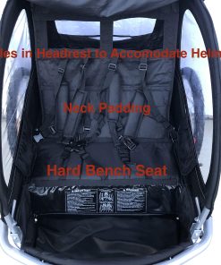 Booyah Strollers – Compra con confianza de una marca de confianza que ha estado en el negocio por 8+ años. Obtener soporte o piezas de repuesto en el futuro no será un problema. Por favor, haga una comparación exhaustiva con remolques de aspecto similar. Lea nuestras diferencias. La cubierta superior bloquea el sol de los niños. Agujeros detrás del reposacabezas para acomodar la parte posterior de los cascos. Sin esto, los cascos empujarán contra el reposacabezas y empujarán la cabeza del niño hacia adelante. El niño puede ponerse muy caliente en el interior, así que el nuestro tiene una abertura trasera para ventilación. La ventana trasera también proporciona acceso al compartimento de almacenamiento. Los reflectantes están en la tela y no montados en el marco. Evita que se dañen al transportar o por su hijo. Cojines de cuello para mayor comodidad. Área resistente a las manchas en el pie para zapatos mojados o sucios. Sistema de enganche fácil de colocar. Ruedas de aluminio de 20 pulgadas (libre de óxido). Puntas traseras para colgar la rueda delantera en la parte trasera. Los remolques de aspecto similar no tienen lo mencionado anteriormente. Capacidad de peso de 88 libras, 18 meses o más. Los asientos no se reclinan. Peso 35 libras como remolque. 34 W x 51 L x 43 H como remolque de bicicleta.