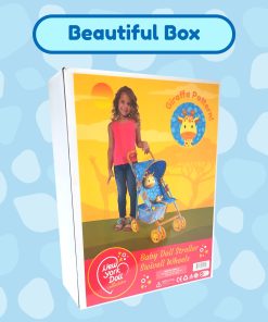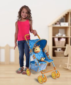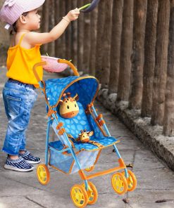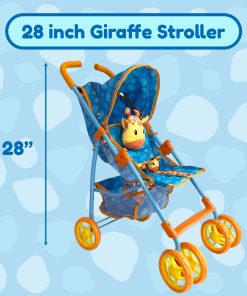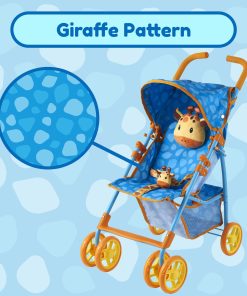 Cochecito de muñecas para niños de 3 a 10 años con un estampado de jirafa azul y beige, este cochecito de juguete es perfecto para niñas y niños por igual. Viene con un adorable cojín de cabeza de jirafa de peluche incorporado y un cinturón de seguridad con una hebilla de peluche a juego. Con manijas fáciles de agarrar y una cesta inferior para llevar accesorios, este cochecito para muñecas es realista y divertido. Ligero, compacto y plegable para facilitar su almacenamiento, es perfecto para viajar y jugar en casa. Haz feliz a tu pequeño con este cochecito de muñecas adorable y único que fomenta el juego imaginativo y el desarrollo de habilidades motoras finas.