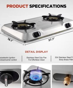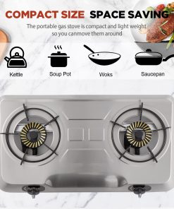 Cocina de gas propano con 2 quemadores, estufa de gas