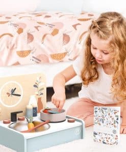 ¡Presentando la Cocina de Mesa de Speedy Monkey, una encantadora cocina de madera del tamaño perfecto para que los pequeños chefs la lleven a donde su imaginación los lleve! Esta encantadora cocina de juego portátil viene equipada con ocho accesorios esenciales, incluyendo una espátula, una sartén y una selección de alimentos, permitiendo a su hijo participar en aventuras culinarias imaginativas. Pueden preparar, cocinar y servir sus comidas favoritas en la estufa incorporada, y una vez terminado, lavar los platos incluidos. El set está diseñado para fomentar el juego de roles creativo, promoviendo habilidades motoras finas, interacción social y un amor temprano por la cocina. Fabricado con madera proveniente de bosques certificados por FSC, este juguete ecológico combina durabilidad con un compromiso con el medio ambiente. Su diseño encantador y características interactivas lo convierten en una adición perfecta a cualquier sala de juegos, generando infinitas oportunidades de diversión y aprendizaje. Ideal para jóvenes chefs ansiosos por explorar las alegrías de cocinar y preparar comidas.