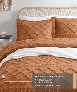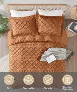 TELA SUAVE Y QUE ABSORBE LA HUMEDAD: Este juego de funda de edredón Codi está hecho de microfibra esculpida 100% duradera y microfibra sólida. El material suave y transpirable tiene propiedades premium de absorción de humedad para una excelente noche de sueño. El proceso textil de alta densidad evita que el diseño acolchado se rompa. ¡La calidad en la que puede confiar por completo!DISEÑO BOHO: Detalles sutiles de texturas bordadas de acolchado bohemio acentúan en tonos simples con patrones dimensionales geométricos, este lindo y elegante juego de ropa de cama traerá una vibra única y sofisticada a su habitación. Esta es una gran adición que ayudará a elevar cualquier decoración de dormitorio.DETALLE CUIDADOSO: Los lazos de esquina adjuntos dentro de la funda de edredón aseguran fácilmente su inserto de edredón en su lugar. Una cremallera oculta facilita la inserción o extracción del edredón.SERVICIO ACTIVO: El servicio al cliente receptivo y atento estará esperando por usted las 24 horas del día. Por favor, envíenos un correo electrónico con cualquier inquietud que pueda tener. Cada comprador que nos contactó obtuvo una solución satisfactoria, ¡así que compre con confianza.CUIDADO FÁCIL: Esta funda de edredón es lavable a máquina. Simplemente lave a máquina en agua fría en un ciclo suave. Secar en línea o secar a baja temperatura. El juego de funda de edredón Twin contiene 1 Funda de Edredón (68″ x 90″) y 1 Funda de Almohada (20″ x 26″), el juego de funda de edredón Queen contiene 1 Funda de Edredón (90″ x 90″) y 2 Fundas de Almohada (20″ x 26″), el juego de funda de edredón King contiene 1 Funda de Edredón (104″ x 90″) y 2 Fundas de Almohada (20″ x 36″)