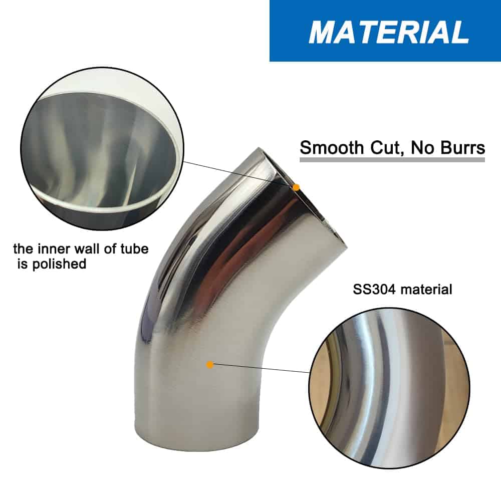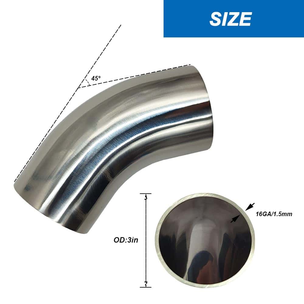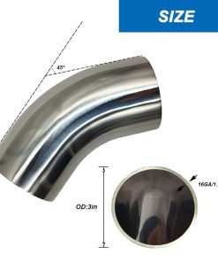 Cree un sistema de escape personalizado con este codo de tubo de escape de 3 pulgadas de acero inoxidable de alta calidad. Fabricado en acero inoxidable SS304 resistente, este codo de 45 grados tiene un espesor de pared de 16GA/0.065″ (1.5mm), lo que garantiza resistencia y durabilidad. Con un diámetro exterior de 3 pulgadas, este codo de escape tiene un radio de curvatura de 1.5D/1.5″, lo que mejora el flujo de aire y la eficiencia del escape. Perfecto para la personalización de sistemas de escape y tuberías industriales, este codo de tubo de escape es una excelente opción para aquellos que buscan mejorar el rendimiento de su vehículo.