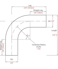 Especificaciones: Material: Aleación de aluminio T6061 Diámetro exterior: 3 pulgadas (76mm) Grado de curvatura: 90 grados Longitud de la pierna recta: 3.94 pulgadas (100mm) Espesor de pared: 0.071 pulgadas / 1.8mm Radio del centro: 1.5D / 4.5 pulgadas Características: – Hecho de aleación de aluminio T6061 de alta calidad para una resistencia superior, durabilidad y fácil soldadura – Perfecto para tuberías de admisión de aire personalizadas, tubos de intercooler turbo y cualquier trabajo personalizado relacionado con el flujo de aire – La curva mandrel suave crea un flujo de aire óptimo; El acabado cepillado proporciona un aspecto único y atractivo – La construcción ligera del tubo también significa menos tensión en su motor, lo que resulta en un mejor rendimiento general y eficiencia de combustible Paquete Incluye: 2 tubos de aluminio de 3 pulgadas de 90 grados
