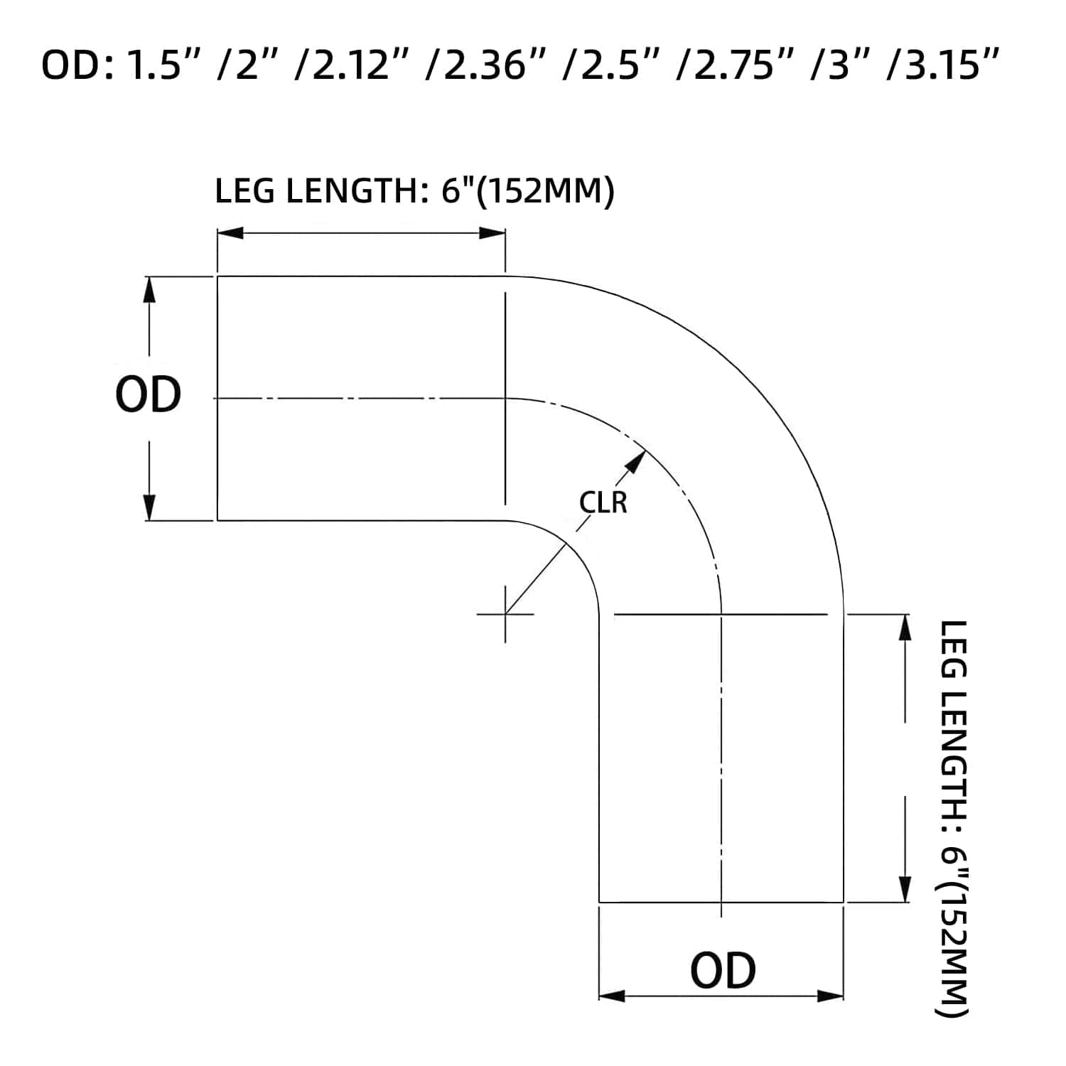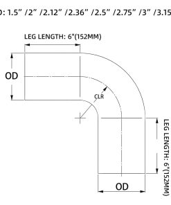 Material: Tubo de 90 grados de intercooler hecho de aluminio T-6061, superficie del tubo de aluminio pulido, resistente al desgaste, óxido y corrosión. Tamaño: Codo de 2.75″. Diámetro exterior: 2.75″ (70mm). Longitud de pierna: 6″ (152mm). CLR: R4.33″ (R110mm). Ángulo de curvatura: 90 grados. Aplicaciones: El tubo de aluminio de 2.75 pulgadas, cortado y soldado según sea necesario, se utiliza ampliamente en materiales industriales. Servicio posventa: servicio de 24 horas y garantía de 1 año de ETL INDUSTRIES. (Ayuda para la instalación de piezas, reemplazo, etc.)