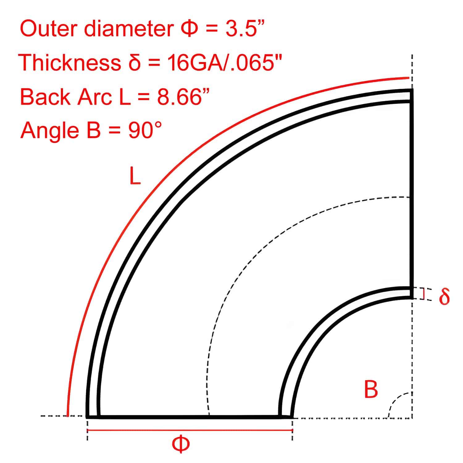 Codo de acero inoxidable de 90 grados de 3.5″ (Paquete de 2) de Urcollections. Este accesorio está fabricado con material premium SS304 que ofrece resistencia a la corrosión. Con un espesor de 1.5mm (16 GA/.065), el acero inoxidable SS304 resiste el óxido, la oxidación y altas temperaturas de hasta 1500 F, lo que lo hace ideal para escapes automotrices, tuberías marinas y sistemas de calefacción solar. El diseño de curvatura precisa del codo minimiza la turbulencia, con un largo de arco posterior de 220mm (8.66″) (R 2.5D) y bordes pulidos a espejo que reducen rebabas y riesgos de raspaduras para un manejo más seguro. Con múltiples aplicaciones en diferentes escenarios, este codo es compatible con sistemas de escape turboalimentados para camiones de carga pesada, RVs y vehículos de alto rendimiento; HVAC a gran escala, sistemas de aire comprimido y transporte químico en la industria; sistemas de riego central en la agricultura; y conexiones de tubería para muebles de estilo industrial y calentadores solares. Fácil de instalar y flexible, este codo es compatible con soldadura, abrazaderas o empalmes, con un diámetro exterior de 3.5″ (89mm) que se ajusta a sistemas de tubería estándar. La medición transparente y la durabilidad son puntos destacados de este producto, con el material SS304 y la pasivación electrolítica que previene la corrosión por agua salada y la corrosión química. Presión nominal: 300 PSI probada a presión de rotura.