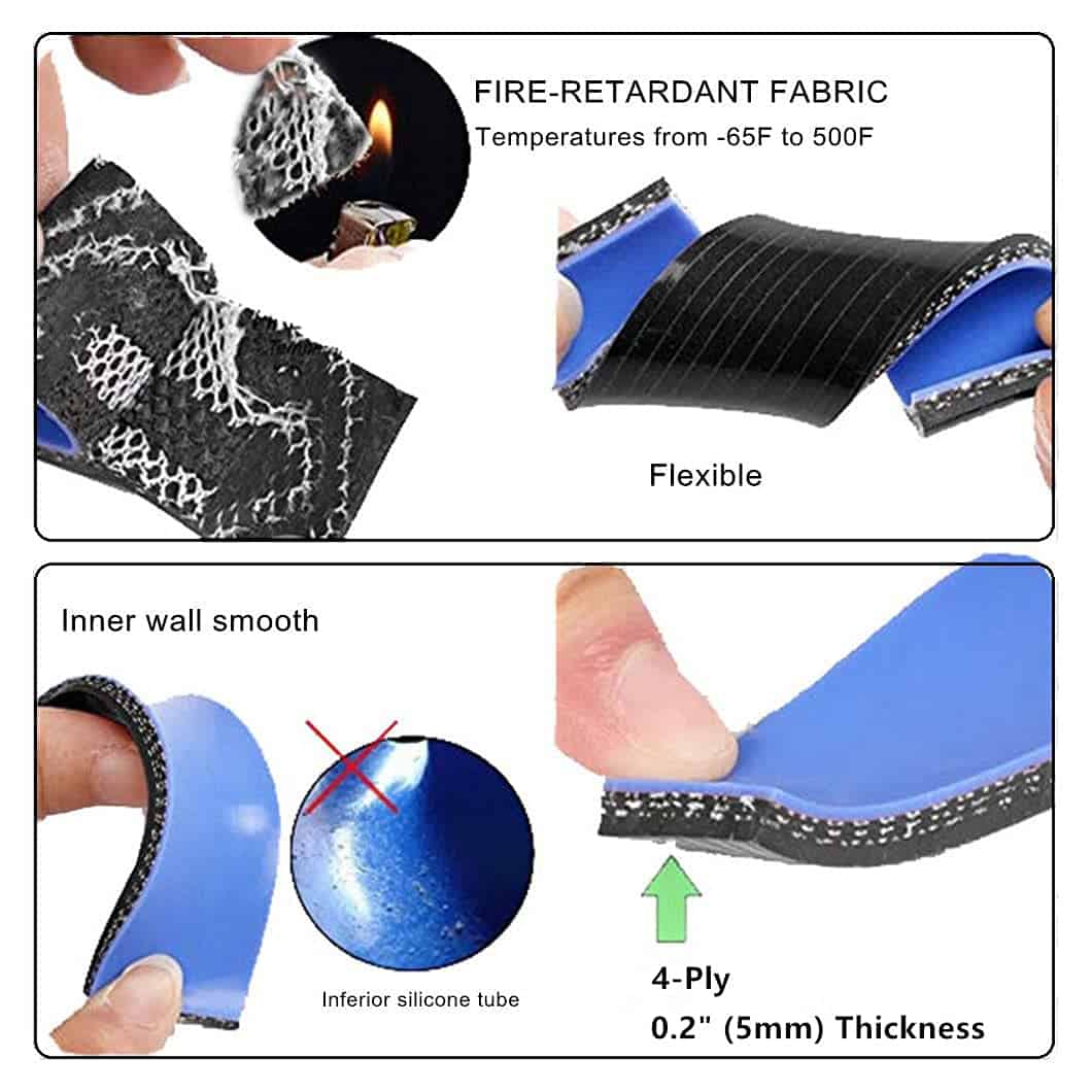 Tamaño: Diámetro interno de 3 a 4 pulgadas (76 a 102 mm), longitud de pierna 5 (125 mm), 4 capas de nylon con espesor de 0.2 (5 mm)