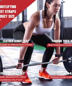 3. Correas de Muñeca para Levantamiento de Pesas de Tamaño Perfecto: El cuero de nuestras correas de gancho para muñeca en el gimnasio es de 8.06 pulgadas de largo y puede adaptarse a palmas de diferentes tamaños. El cuero con diseño de doble capa de costura de 0.19 pulgadas de espesor, no solo suave sino también seguro y cómodo. El acolchado de neopreno es de 7.08 pulgadas de largo, 2.56 pulgadas de ancho y 0.2 pulgadas de grosor para proteger mejor la muñeca de lesiones. La longitud ajustable de gancho y lazo de alta densidad es de 16.7 pulgadas y se ajusta a circunferencias de muñeca de 6.3 pulgadas a 8 pulgadas.