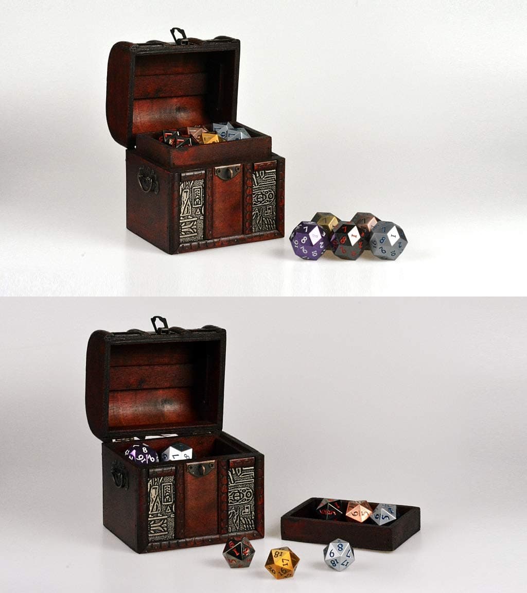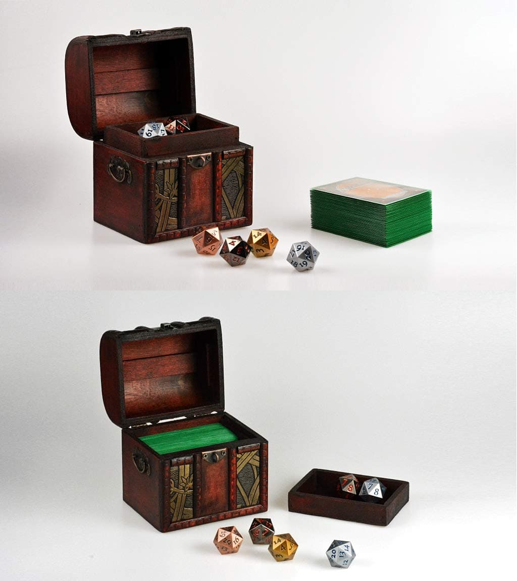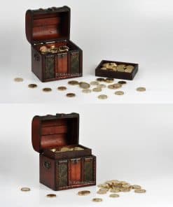 El Cofre Élfico (Diseño – Armonía): un cofre de madera con cerradura para almacenar monedas, monedas de fantasía y colecciones de monedas. ¡Viene con cerradura y llave de metal!