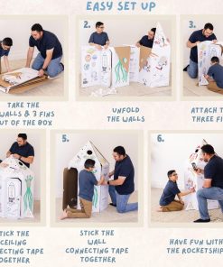 ¡Embárcate en una aventura cósmica con la Casa de Cohete de Cartón! ¡Este fuerte imaginativo brinda a los niños una tela en blanco para usar su creatividad mientras ensamblan, colorear y juegan a fingir en su propio barco espacial! Este cohete fue diseñado cuidadosamente por un papá que también es ingeniero aeroespacial. Hecho de cartón duradero y ecológico, ofrece un entorno divertido para que los niños jueguen, aprendan y se expresen artísticamente. Fácil de armar y desarmar, este cohete espacial se puede guardar de forma compacta cuando no se utiliza. Ya sea una tarde tranquila en casa o una reunión animada con amigos o familiares, este cohete para colorear seguramente encenderá la imaginación y proporcionará horas de diversión y juego educativo.