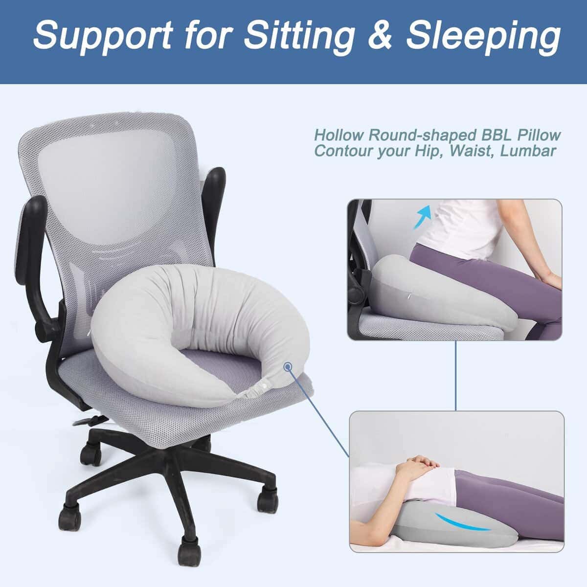 1. COJÍN BBL ÚTIL – Este cojín es muy práctico y una buena elección después de su recuperación de la cirugía de levantamiento de glúteos Brasileño. Diseño circular hueco abierto, el cojín hueco post-operatorio proporciona un soporte de espalda más duradero.