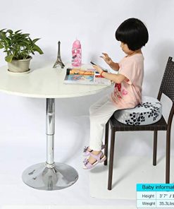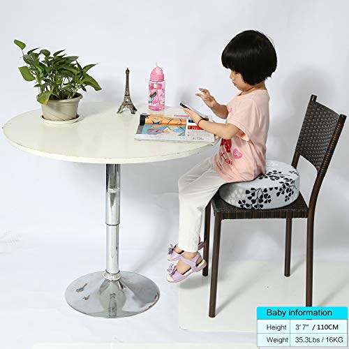 Cojín elevador portátil para viajes para asiento elevador para niños con cubierta Cojín para arnés para niños bebés niños pequeños para sillas de comedor Material: 60% Algodón 40% Poliéster + esponja de alta densidad Color: Base gris + hojas Tamaño: 34x34x10 cm / 13,4×13,4×3,9 pulgadas (Redondo) Características: 1. Seguridad, gránulos antideslizantes en la parte trasera para mantener el cojín en su lugar 2. Con asa antideslizante, fácil de llevar y transportar 3. Cubierta desmontable para lavado en máquina sin necesidad de lavar la esponja 4. Ligero y portátil, se adapta a cualquier silla, simplemente llévalo contigo a casa de la abuela o a un restaurante 5. Multiusos, también se puede utilizar como almohadilla para asiento en la sala de estar, guardería, terraza exterior o en la arena. Nota – Cojín para silla diseñado para niños que pueden sentarse solos en la mesa – Solo se ajusta a sillas, no debe usarse para aviones, transporte en automóviles, etc. Paquete incluido 1 x Cojín Elevador Redondo para Silla