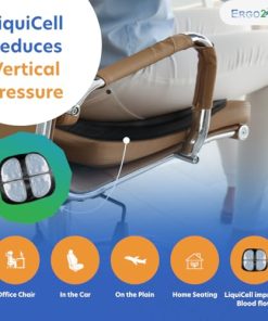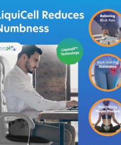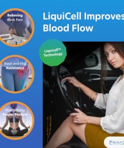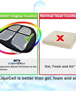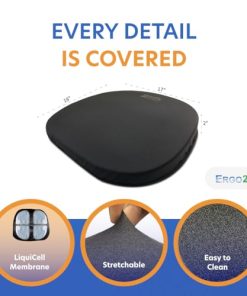 Alivia el Dolor y Promueve la Circulación con un Cojín de Asiento Premium de Ergo21 Si pasas mucho tiempo sentado debido a conducir, trabajar o viajar, estás constantemente comprimiendo tu columna vertebral y ejerciendo presión en tus caderas, coxis y área lumbar inferior. Por eso es importante obtener el apoyo adecuado con un Cojín de Asiento original Ergo21 LiquiCell que brinde apoyo relajante durante todo el día que te ayude a mantenerte energizado, reducir el dolor y promover una postura adecuada. La tela de micro-estiramiento mejora la circulación. Hecho en los Estados Unidos