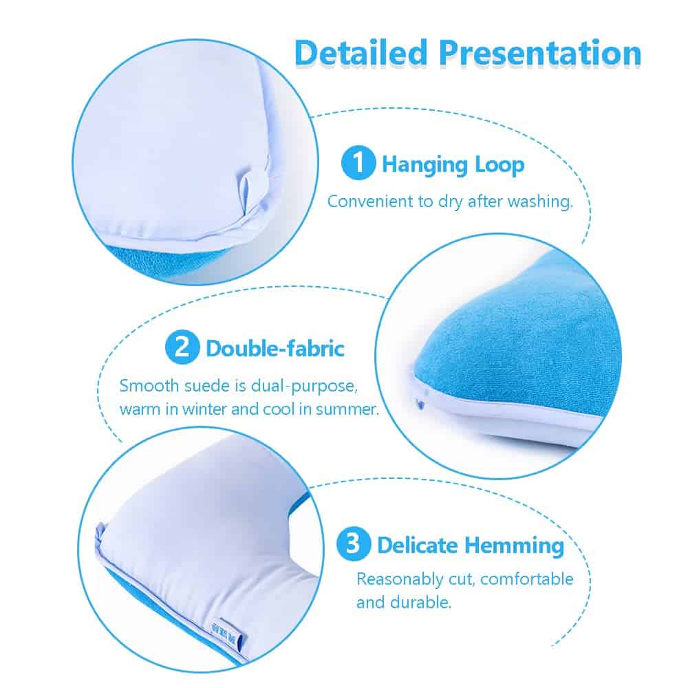 Tela de Uso Dual Caliente y Fría: Gamuza para el invierno, brillante para el verano. Se recomienda lavar a mano, lavar a máquina puede provocar que las costuras de la almohada se rasguen. Si es necesario lavar a máquina, coloca la almohada en una bolsa de lavandería.
