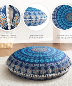 Cojín de meditación redondo de Codi de 32 pulgadas, perfecto para sentarse cómodamente en el suelo mientras meditas, te relajas en tu sala de estar o te calientas junto a una chimenea al aire libre. Este cojín único presenta un diseño bohemio de mandala circular en un llamativo color azul marino que seguramente iluminará cualquier espacio. El inserto y la funda se venden juntos para garantizar la máxima calidad y comodidad. El cojín está relleno con espuma de memoria triturada premium que no se aplana con el tiempo, brindando un soporte duradero y cómodo. La funda es lavable a máquina para facilitar la limpieza y el cuidado. El tamaño de 32 pulgadas de diámetro y 6 pulgadas de altura lo convierte en el compañero perfecto para relajarse y disfrutar de la calidez y comodidad en cualquier ocasión. Este cojín está diseñado para durar y se ofrece una garantía del fabricante para mayor tranquilidad del cliente.