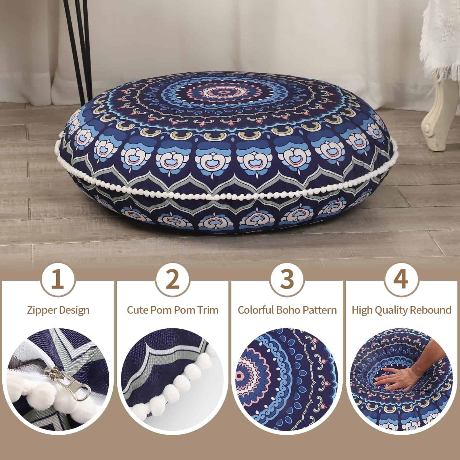 Cojín de Meditación LOVMOC de 32 pulgadas -Azul Marino