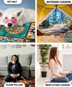 Cojín de meditación mandala, tapete de meditación boho, cojines de meditación para sentarse en el suelo, cojines para sentarse en casa y al aire libre Este cojín de suelo cuadrado es la elección perfecta para aquellos que buscan comodidad y estilo. Fabricado con terciopelo suave, este cojín es más suave al tacto pero proporciona un amplio apoyo para sentarse cómodamente durante largos periodos de tiempo. Su tamaño de 22» x 22» x 4.7» es lo suficientemente grande para adaptarse a cualquier miembro de tu familia. Además, este cojín multiusos es perfecto para usar en el suelo, sofá, respaldo, y también puedes llevarlo contigo en tu coche cuando vayas a cualquier lugar. No solo es un excelente compañero para tu familia, sino que también puede usarse para decorar tu casa y brindar un ambiente relajante y agradable. ¡También puedes regalarlo a tus amigos! El cojín se envía al vacío, por lo que puede parecer delgado al principio, pero se inflará y suavizará una vez expuesto al sol durante unas horas. Además, la limpieza es sencilla: basta con limpiar con un paño húmedo y secar al aire. ¡No te preocupes por los colores, ya que no se desvanecen! Este cojín de suelo cuenta con una asa conveniente que facilita su transporte. Te permite llevar tu gran cojín de suelo de un lugar a otro sin esfuerzo y también te ayuda a quitar y reemplazar la funda para lavarla. ¡Además, el asa añade un toque funcional y atractivo a tu cojín cuadrado de suelo! ¡Hazte con este cojín de meditación mandala ahora y disfruta de la comodidad y estilo que aporta a tu hogar!