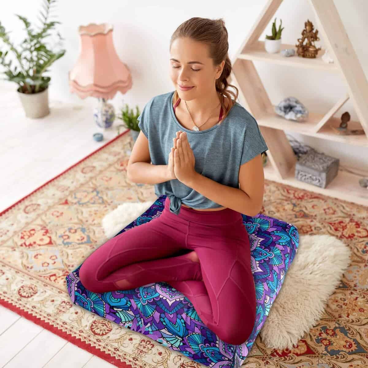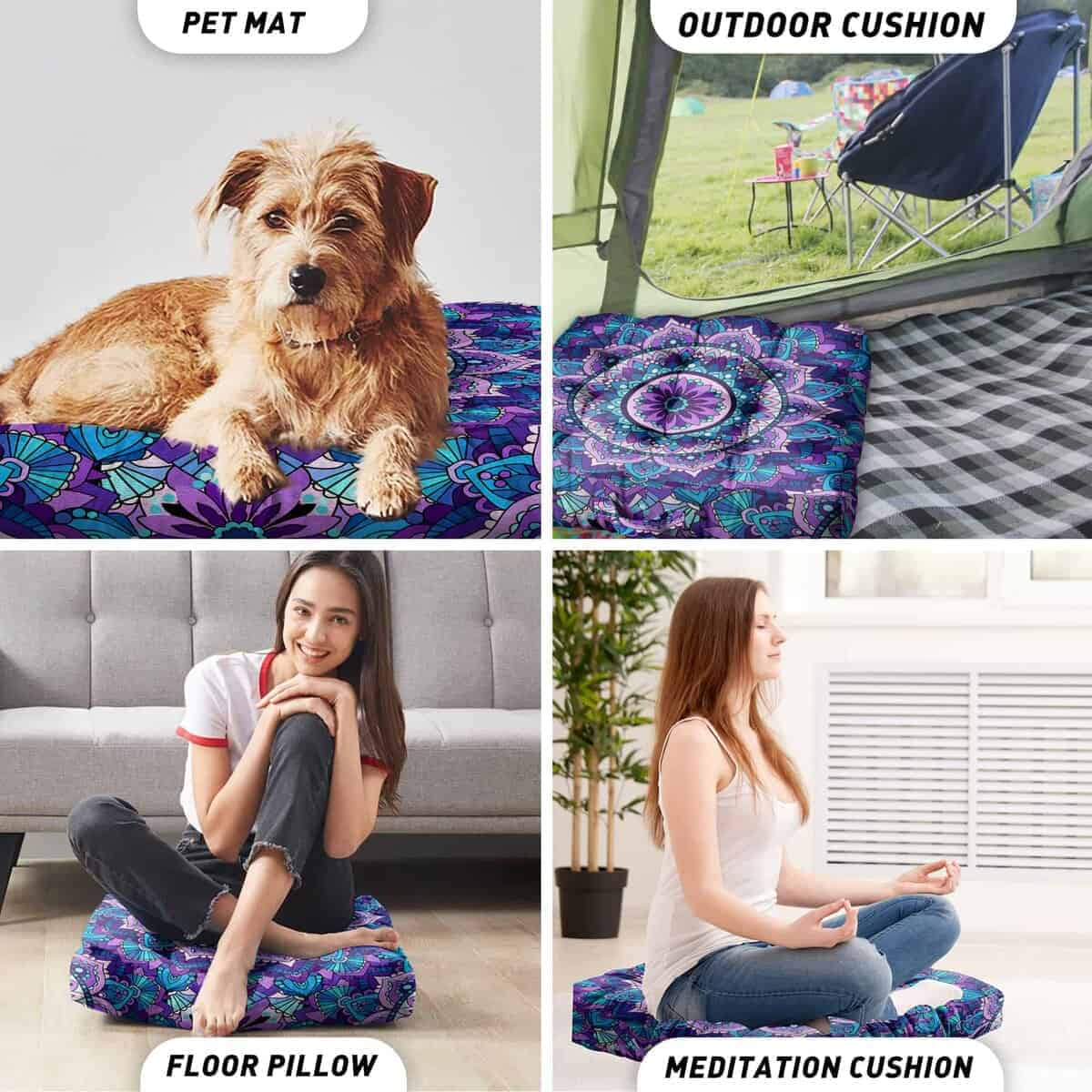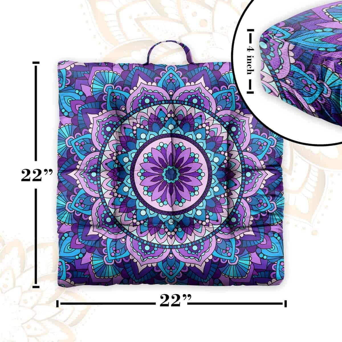 Este cojín de meditación mandala es perfecto para disfrutar de momentos de relajación y comodidad en casa o al aire libre. Confeccionado con terciopelo suave, ofrece un soporte excelente para sentarse durante largos períodos de tiempo. Su tamaño grande de 22» x 22» x 4.7» lo hace adecuado para cualquier miembro de la familia. Puede utilizarse en el suelo, sofá, respaldo, o llevarlo contigo en el coche para tener un compañero de confort en tus viajes. Además, su asa resistente facilita su transporte y se puede utilizar como un atractivo elemento decorativo en cualquier habitación. Disfruta de un ambiente relajado y agradable con este cojín de meditación mandala.