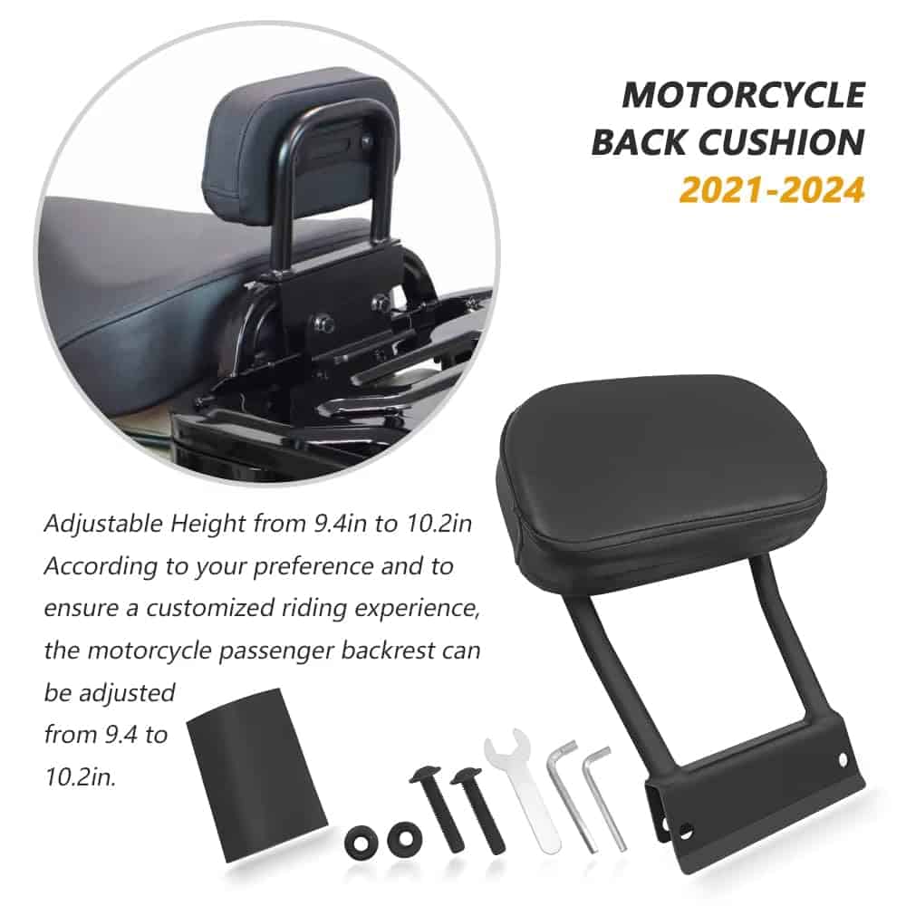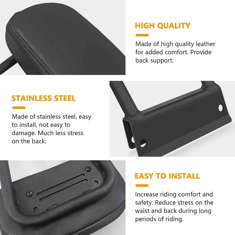 Este cojín de respaldo para asiento trasero de motocicleta es de alta resistencia, no se degrada, no se oxida, es sólido y duradero. La fabricación profesional y el diseño elegante con gran habilidad decorarán completamente tu motocicleta. Es altamente confiable y tiene funciones prácticas.