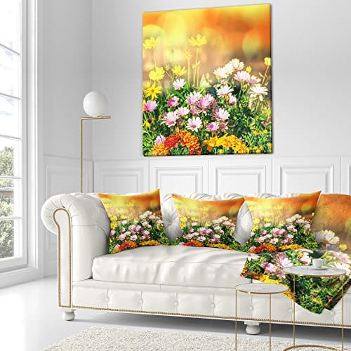 Cojines decorativos para sofá, cama con fundas con cierre de cremallera. Estos cojines florales están impresos con tintas italianas de alta densidad de color para crear una obra de arte vibrante y colorida. Formas básicas con un toque de diseño gráfico moderno. Cierre de cremallera para que puedas quitar el cojín de su cubierta. Comodidad similar al plumón sin olor y 100 por ciento hipoalergénico. Atributo: granja, tradicional, moderno.