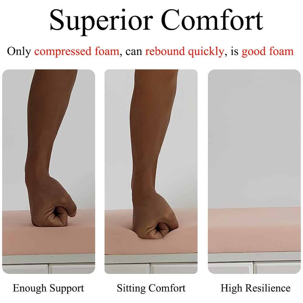 4. Espuma de alta comodidad La espuma de alta resiliencia le proporciona una comodidad superior y alivia el dolor de glúteos, no solo le brinda suficiente soporte, sino que permite que el cojín mantenga su forma original después de sentarse durante mucho tiempo.