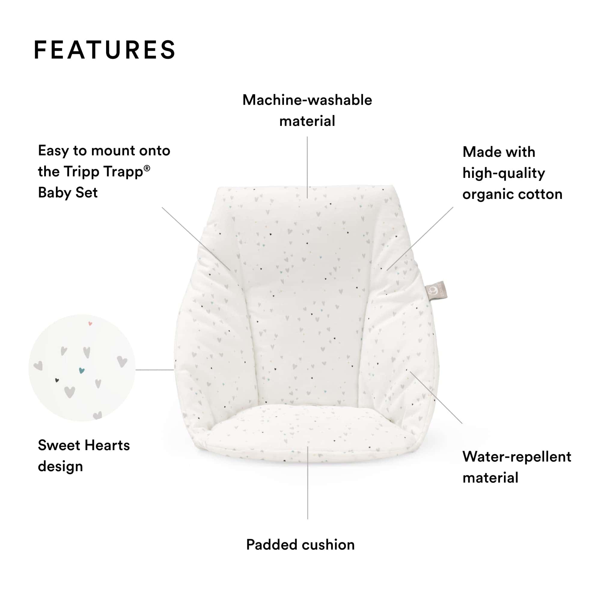 Cojín para bebé Stokke Tripp Trapp, Sweet Hearts – Añade
