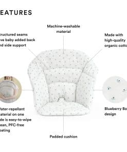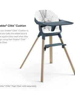 4. COMBINAR CON LA SILLA ALTA STOKKE CLIKK – El Cojín Stokke Clikk está diseñado para adaptarse a la ligera y duradera Silla Alta Stokke Clikk, que incluye una silla alta, bandeja y arnés. La silla es fácil de limpiar con un asiento apto para lavavajillas.