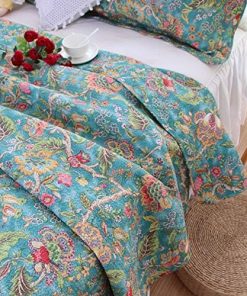 Este juego de colcha acolchado con patrón floral estilo cottage country es hermoso y delicado.