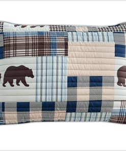 Colcha Acolchada de Franjas de Cuadros Escoceses de Oso