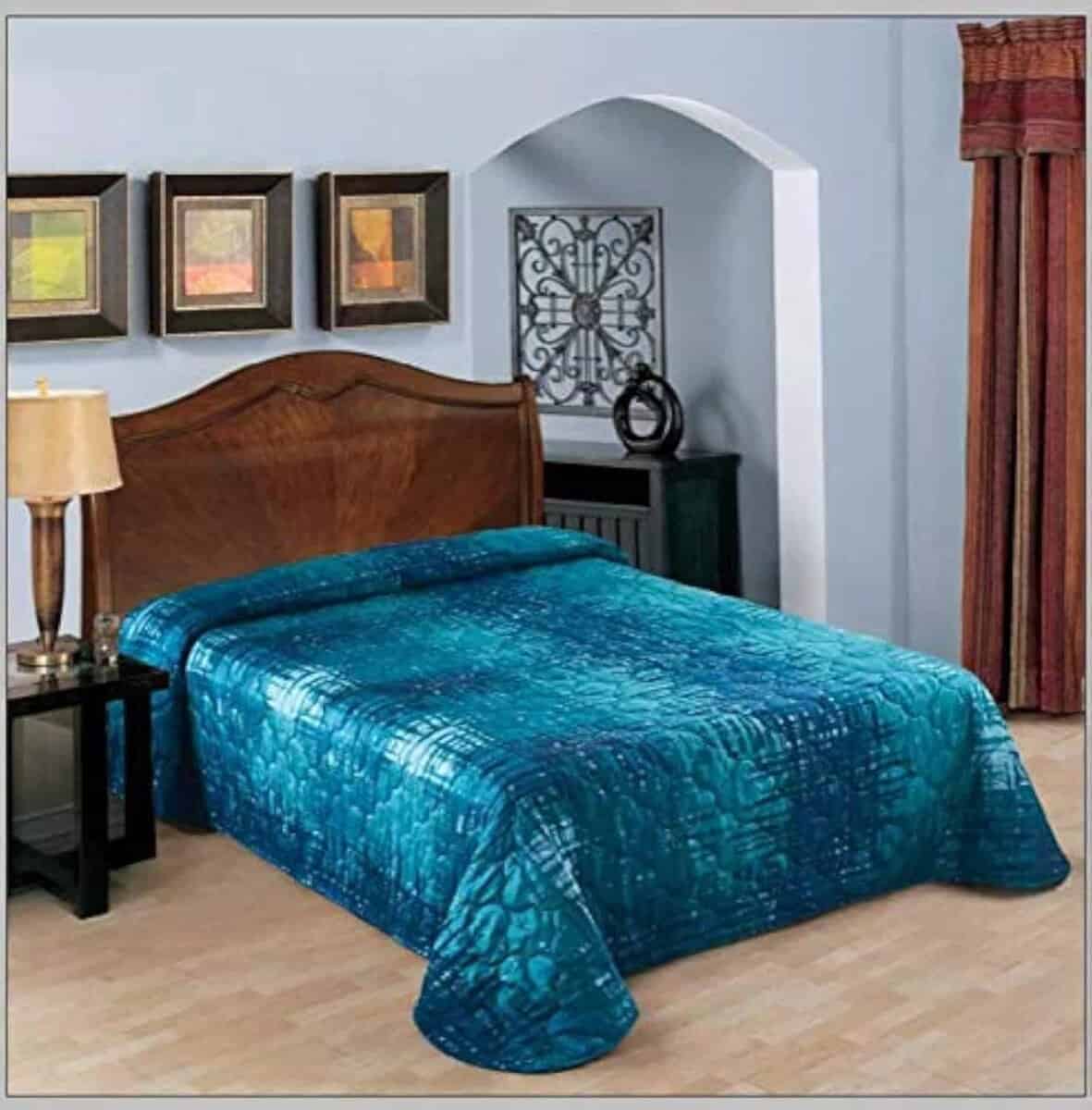 Everest Supply Colcha Acolchada Diseñada para Hotel/Motel, Resort, Hogar, Con Sobredimension en los Lados de 21″ cada Uno Tela de 100% Poliéster-Impresión Moderna-Azul-Estilo Lanzar/Plano (Tamaño Completo/Completo XL 96×118″, Azul)