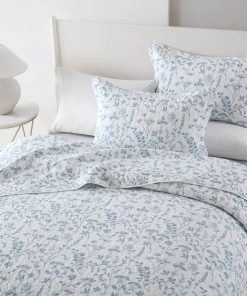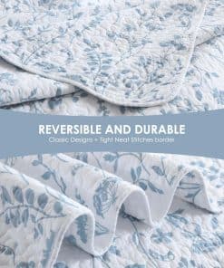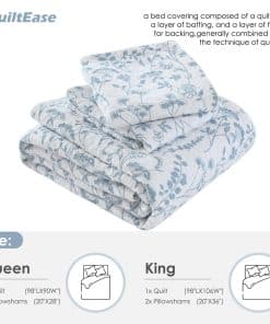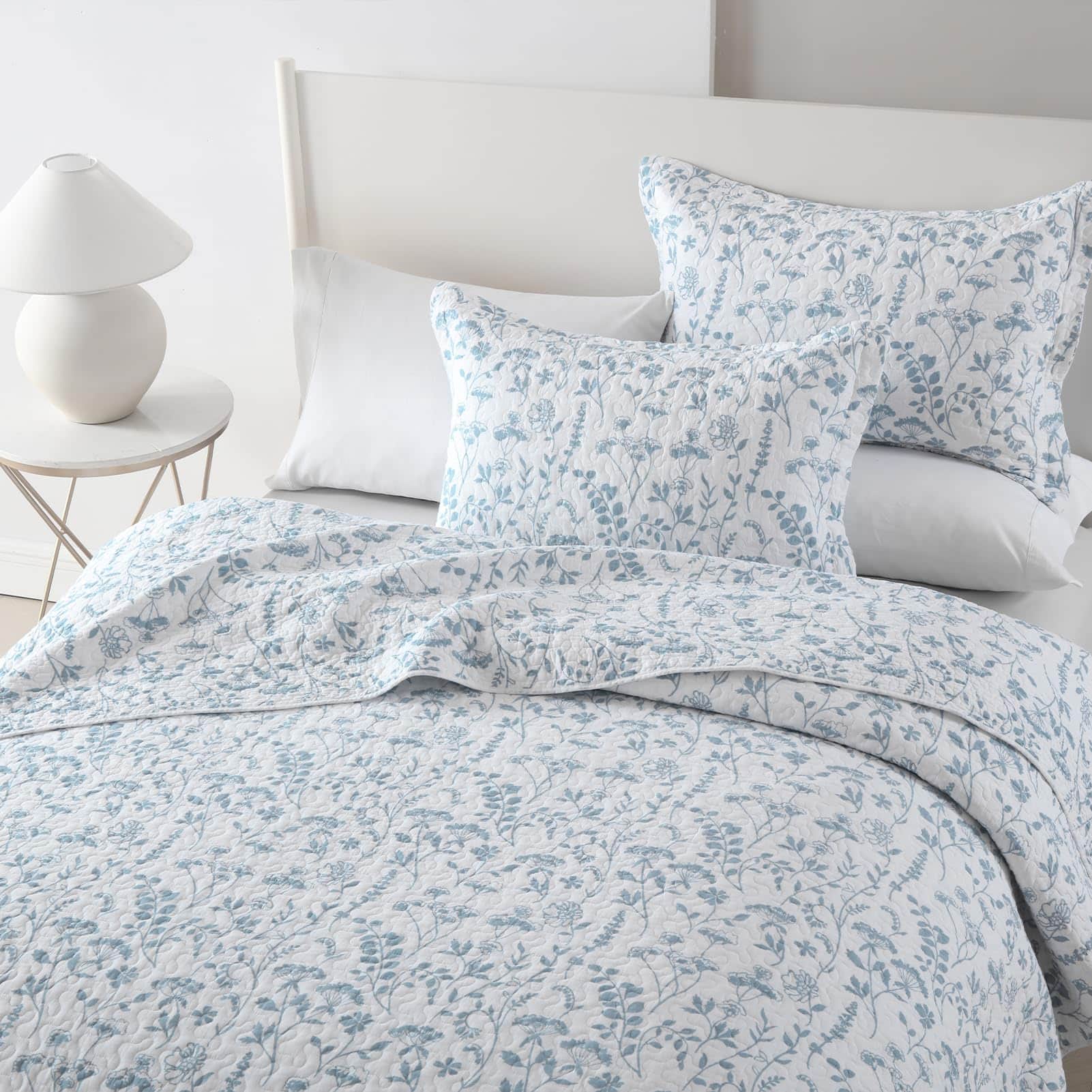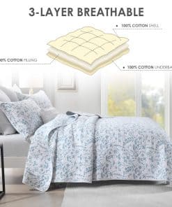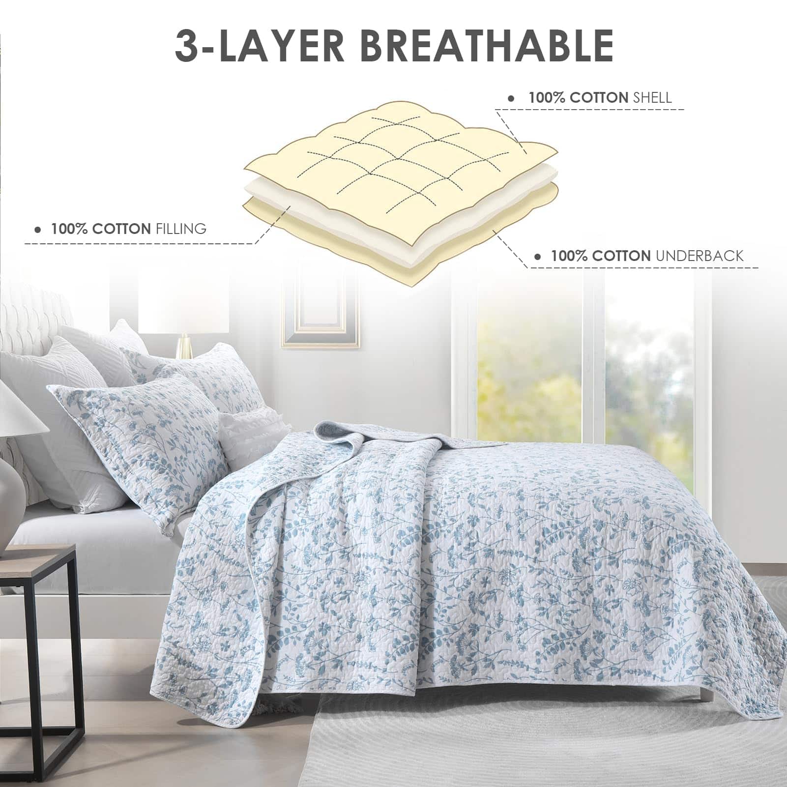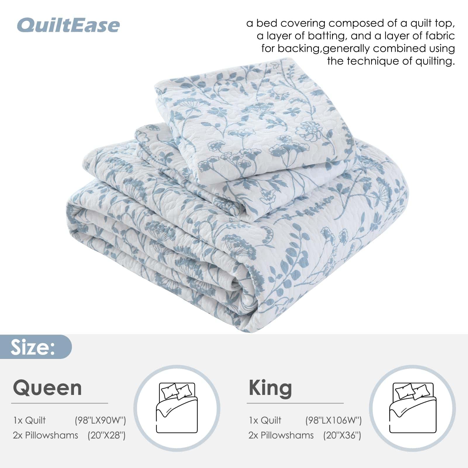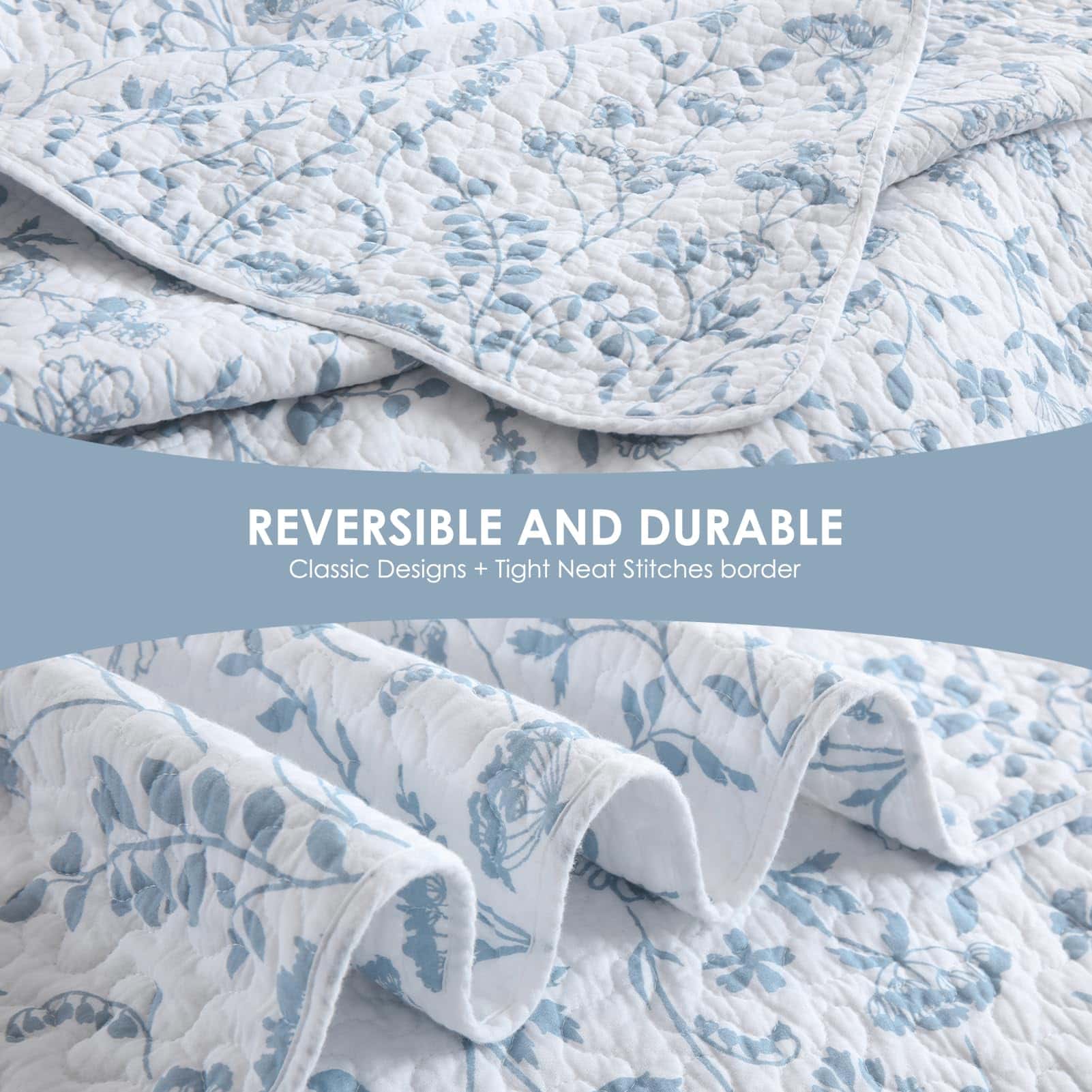 Colcha Azul Floral King Size – Juego de Colcha de Algodón