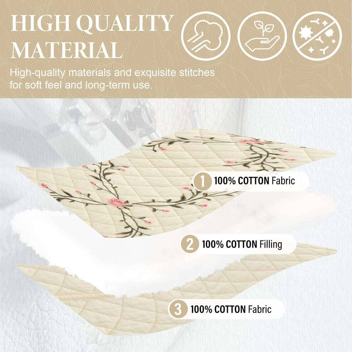 3. Uso en Todas las Estaciones – Las puntadas limpias y ajustadas garantizan un uso a largo plazo. El diseño de tres capas y el relleno de algodón 100% en el interior hacen que este juego de colcha acolchada sea ligero pero cálido, adecuado para primavera, verano, otoño/invierno y se puede usar como juegos de colcha, juegos de colcha extragrandes, set de cubrecamas, colcha, cubrecamas y set de edredón. Se puede usar solo o con manta o edredón. Úsalo como tu cubierta de cama principal o como una pieza de capas.