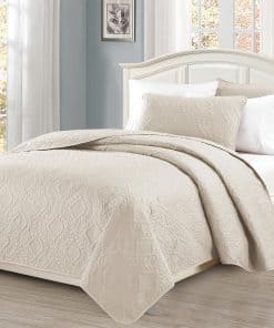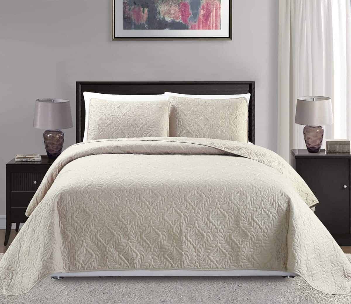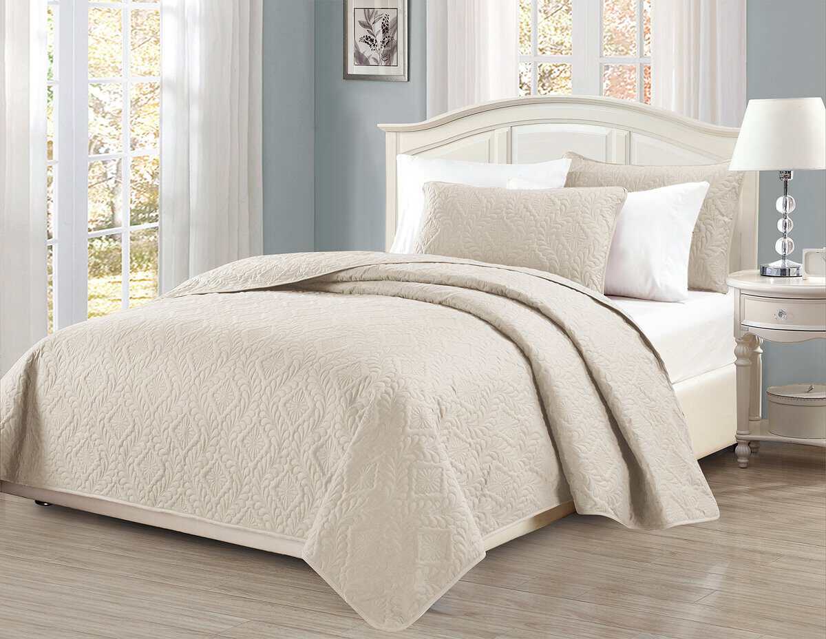 Mk Collection 3pc Cubrecama Tamaño Full/Queen Diamante Sólido Beige Nuevo