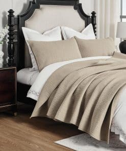 Colcha de Algodón Puro de Lujo con Hilos de Punto de Calla Angel Evelyn en color café. Este juego de colcha de 3 piezas es perfecto para darle un toque elegante y moderno a tu habitación. Hecho con material suave y versátil, con un diseño geométrico clásico que brinda un aspecto de lujo. La colcha tamaño King de 95″ x 108″ viene acompañada por dos fundas de almohada estándar de 20″ x 30″. Pre-lavado y pre-encogido para mayor durabilidad. Con ribeteado con tubería y reversible para mayor practicidad. Apto para lavar a máquina para una fácil limpieza. Construcción de tela completa y relleno con algodón puro convencional de 250 gramos para una experiencia de sueño confortable. ¡Dale un toque de elegancia a tu habitación con esta hermosa colcha de lujo de Calla Angel Evelyn!