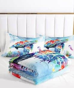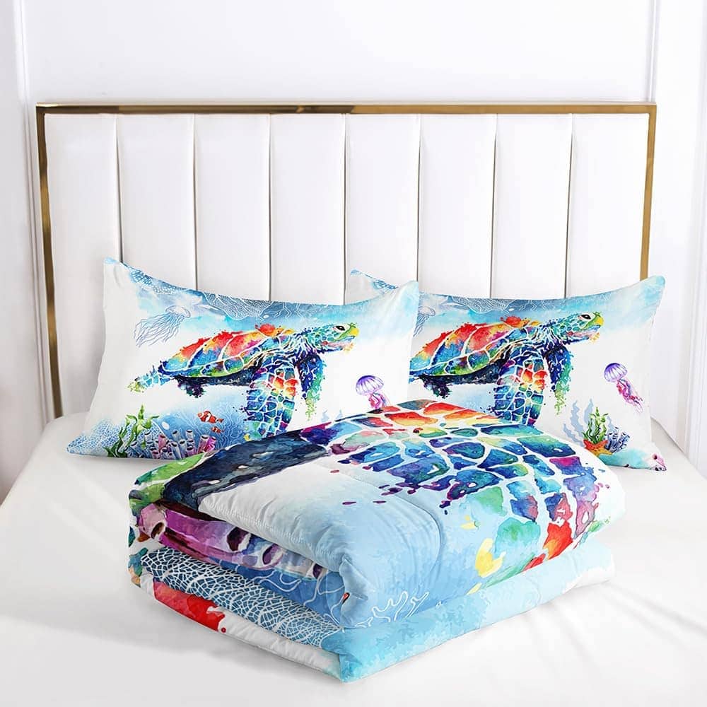 Nuestra lujosa y elegante colcha impresa en 3D presenta un tono divertido y alegre que será un éxito con los más pequeños. Con temática marina de vida submarina con tortugas marinas, caballitos de mar, conchas, peces y anclas, este juego de edredón satisface todo tipo de decoración de dormitorio. Deja que tu dormitorio, habitación universitaria, apartamento u hotel tengan una nueva apariencia con esta integración de arte y visión. Su diseño 3D lujoso, chic y lleno de vitalidad hace que sea más suave y cómodo con un relleno ligero, que puede usarse como un inserto para el edredón o como un edredón independiente, no demasiado delgado ni demasiado grueso, puede ser utilizado durante todo el año, conveniente y práctico. Desde el conforter viene empacado en una bolsa de vacío, se recomienda que se deje al sol y se golpee suavemente durante el horneado para que quede esponjoso. Muy suave y duradero. Fácil de transportar y almacenar. Un excelente regalo para tus niños, adolescentes y adultos.