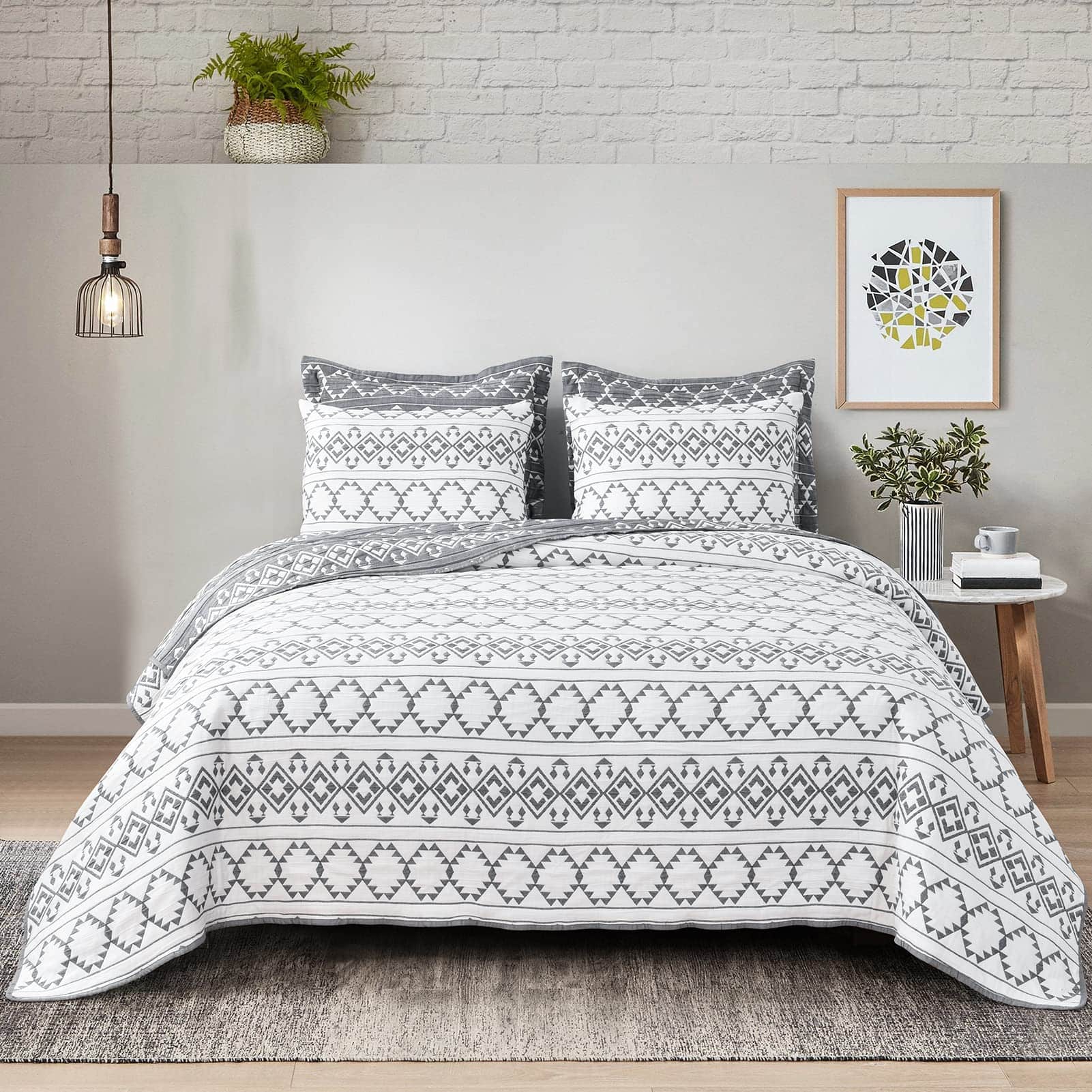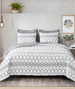 3. Patrón a rayas grabadas: El juego de colchas estampadas a rayas grabadas convertirá tu aburrido dormitorio en uno clásico y elegante. La colcha de cama real mantiene el relleno en su lugar para tu sueño tranquilo. La selección de colores múltiples y el juego de cama queen de cojines 3D dan un nuevo aspecto a tu dormitorio, creando una apariencia única y coordinada.