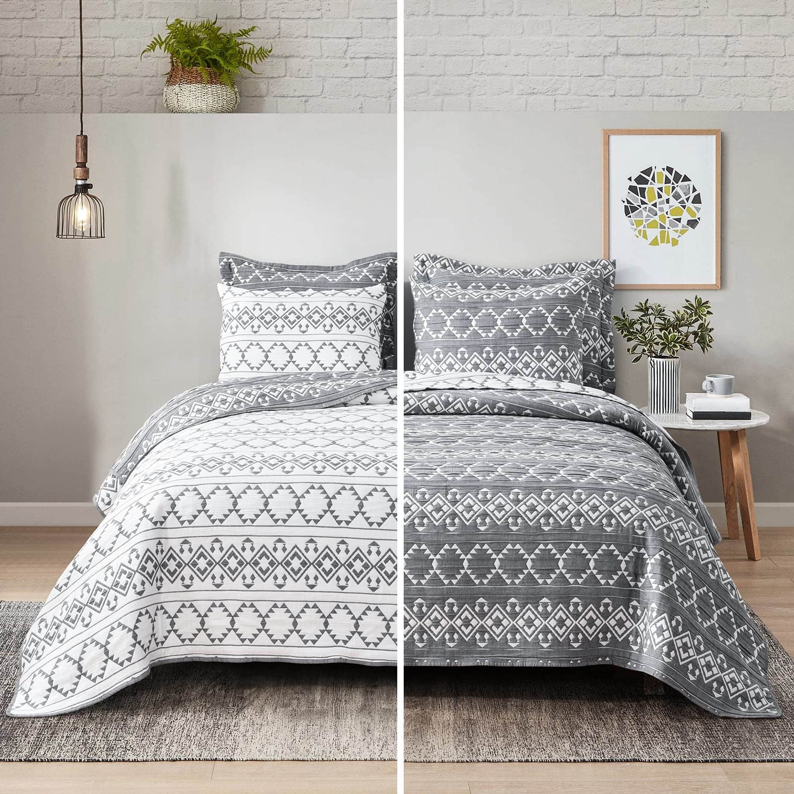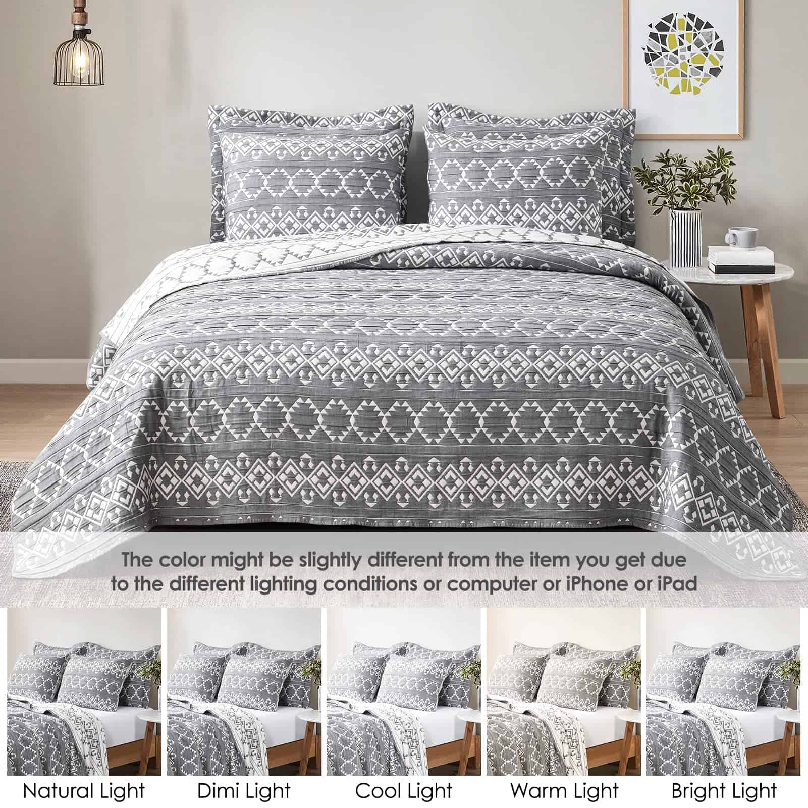 2. Colcha multiusos: La colcha tamaño queen incluye 1 colcha (90″x96″) y 2 fundas (20″x26″). Dependiendo de la temporada, esta colcha queen se puede usar como colcha, cubrecamas y colcha. El diseño de doble cara disponible brinda una sensación cálida a su dormitorio, habitación de invitados, habitación infantil y dormitorio universitario. Si desea que el juego de colcha queen caiga por todos los lados hasta el marco de la cama, puede tener una cama más corta o elegir un tamaño más grande.
