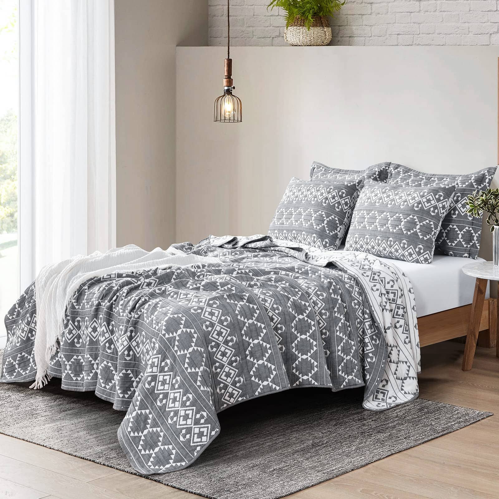 Colcha de cama a rayas Jacquard Jupitex para cama Queen